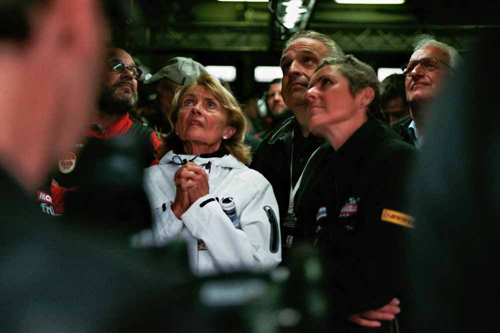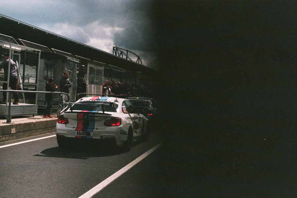 Also ab an die Strecke, Kamera raus, erstes Foto gemacht und – Überraschung – man hat keine Ahnung, was daraus geworden ist. Beim nächsten Mal schreibe ich auf, was ich fotografiert habe, sonst weiß man hinterher rein gar nichts mehr. Das satte KLACK bei jedem Auslösen und der Retro-Look rufen schnell neugierige Leute auf den Plan. Erstes Fazit des Tages: Wer bei der VLN Freunde finden will, nimmt eine analoge Kamera mit. Es kommt zudem vermehrt zu einem neuen Phänomen, das ich so nicht (mehr) kannte: Ich setze die Kamera an, schaue durch, und mache kein Foto. Dieses Verhalten wird immer häufiger, je voller der Film wird. In Zeiten von 128GB-Speicherkarten mal was ganz Neues.